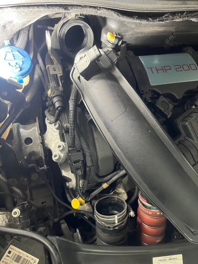 PEUGEOT208GTIを中古車で購入してから10ヶ月程度たちエンジンルームの異音が少し酷くなったので、修理してみました。購入時からカタカタ音が気になっていましたが、このエンジンはお店の方曰く「こんな感じ」とのことだったので放置していました。後に調べるとタイミングチェーンテンショナーのバネが弱ってくると音が酷くなるようです。また、暖気が済むと少し音量はさがるので季節も関係すると思います。放置すれば大きなトラブルに繋がるのでタイミングチェーン・ガイド等の交換も何れ必要になります。部品は太いボルト状のテンショナーを交換するだけなので作業としては簡単と思い込みスタートしましたが最悪の作業となりました。テンショナーの位置がスロットル側のターボパイプ下にあり、それを外すのにエアクリーナーBOXを外さないと作業ができません。エアクリーナーBOXを外すには繋がっているインテークパイプIN/OUTの2本を取り敢えず外します。続いてインタークーラーOUTのターボパイプを外し、最後にスロットルにつながるパイプがテンショナー抜き差しに邪魔なので外しますが、スロットルとパイプを固定しているバンドのネジに上からでは全く目視することも触ることもできません。ここまでバラしてしまった状態では移動(エンジンが掛けられない)出来ないので、右側をジャッキアップ(左は壁なので人が入れない状況)し車両下に潜ってもバンドネジが見えません。取り敢えず右タイヤを外し隙間に手を入れるとバンドネジに触れることができたので緩めることはできたのですが、結局スペースが狭くてパイプが抜けません。ここまでに相当な時間を費やし疲労はピークに達していたのでパイプの破損覚悟で無理やり傾けタイミングチェーンテンショナーを外しました。簡単に書きましたが実際はテンショナーの横でセンサーらしきもののカプラーが邪魔しておりソケットを挿し、外す作業だけで1時間はかかっていると思います。全ての分解に5時間、組立に1時間でしょうか。テンショナーのバネ強さも新旧比較すると明らかに違うので交換の意味はありました。試運転の結果、暖気後の室内に響くカタカタ音は解消(エンジンルームでは鳴っています)されました。本来であればタイミングチェーンの伸びも発生しているので一時しのぎの整備であり、チェーン交換はSSTが必要なのでDIYでは厳しいですが今後の課題です。金型にも言えることですが、整備性の良いモノづくりはとても重要なことです。ちなみにヘインズの整備書(オーナーズ・ワークショップ・マニュアル)を参照してこの時間です。非常に疲れました。