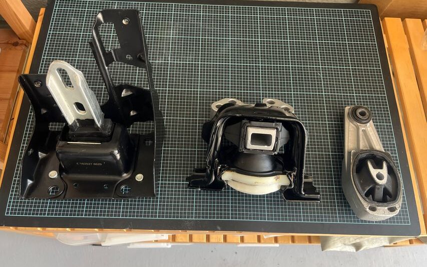 PEUGEOT208のエンジン・ミッションマウント交換にチャレンジです。以前タイミングチェーンテンショナー交換時に車両下に潜った際、エンジンマウントリア(アンチトルクリンク)のゴムブッシュが切れているのを発見しました。車両購入の際エンジンスタート時にとんでもなくエンジンが揺れていたので指摘しましたが、お店の方は「こんなもんですよ」的な感じで、確かに自分の愛車をメンテナンス時にエンジンキーをひねるのは自分なのでエンジンが掛かる瞬間を見る機会がないので妙に納得してしまいました。実際エンジンが掛かった後の振動が激しいわけではなく、その後に不具合があったわけでもありませんが交換することにしました。作業の工程はエンジンマウントリアが切れているので最初に交換しますが、ジャッキアップしエンジンをジャッキで支えて2本の13ソケットで外すことが出来ます。エンジン位置はヘタったブッシュで支えられていたので、新部品は穴位置が10mm程度ズレています。ジャッキでエンジンを持ち上げながら穴位置を合わせてボルトが入れば簡単に作業は完了します。次にミッションマウント左上を交換します。交換にはバッテリーの下にマウントがあるので外し、左のタイヤを外しエンジン側面から手が入るようにします。ボルトのソケットサイズが16で普段使うことがないサイズなのでスパナとソケットを購入する必要がありました。エンジンルームからミッションを吊るすボルトは簡単に外すことが出来ますがフェンダー側についているボルト2本は左タイヤハウスから極小のスペースからスパナで少しずつ(1/4回転も出来ません)回します。ラチェットメガネレンチ16があれば簡単かもしれませんがレアサイズ(近所では入手困難)だと思いますし、おそらく極小スペースに入らなかった時、普段使わないのでショックも大きいと思います。残るエンジンマウント右上は交換時間がなくなったので後日とします。その他工具はトルクスレンチが複数必要です。部品は「パーツのパルカ」さんで適切なOEM商品を選定していただいてから購入しています。毎度のことですが、消耗部品の交換を苦労しながら楽しんでいます。