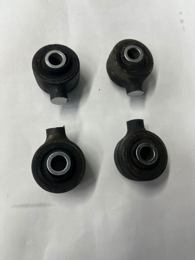 10年ほど前にFC3Sのリアホイールのキャンバーが寝ている(当時、調整式リアメンバーサブリンクには変更済みで調整範囲の最短でもあまり変化が無いのでこの部品では効果が小さい?)ことがどうしても納得行かなかったのでロアアームコントロールリンクを短くしキャンバーを起こすことを検討しました。皆様の情報を参考にしてロッドエンドベアリングのオス・メス・カラーを組合せて作りましたが純正リンクの芯間距離は約56でロッドエンドオスメスを組合せただけの物では純正より長くなってしまうのでロッドエンドを追加加工(切削・タップ切り直し)した記憶があります。当時使用したものは有名ベアリングメーカー(商品選定が仕様にあっていたのか不明)の製品でしたがコトコト異音が大きくなって来たので今回は少し考え方を変えて当時交換していた純正ロアアームコントロールリンクを改造することにしました。10年前に外した時点で27年7万km程度使用しているものでしたがピロボールを保護するゴムシールが経年劣化しているだけでピロボールにはガタはありませんでした。改造の流れは清掃→脱脂→中央を切断→切削(寸法出し)→溶接→洗浄→グリスアップ→ゴムでシール→防錆塗装で完了です。この作業で重要なことは溶接の強度を保つため開先を行ってから溶接することだと思います。強度を意識すると溶接時に過剰に熱が伝わりピロ内部に固着したグリスが沸騰し焼けていましたが仕方ありません。自動車部品あるあるだと思いますがベアリング・オイルシール等も分解し採寸をしない限り相当品を探しだすことは非常に困難(相当品が流通していないことも十分考えられます)なことなのでダメ元で分解すると復旧できない状況に陥ってしまいますので注意が必要です。したがってピロボール(ブッシュ一体型で特殊)も交換は現品の程度が良かったのでしていませんし、経年劣化のゴムシールも採寸し探しましたが見当たらないのでゴム接着剤でグリスを塞ぐ処理としました。因みにリンクの芯間距離は純正56に対して右リンク49と左リンク52で加工しています。