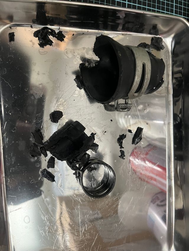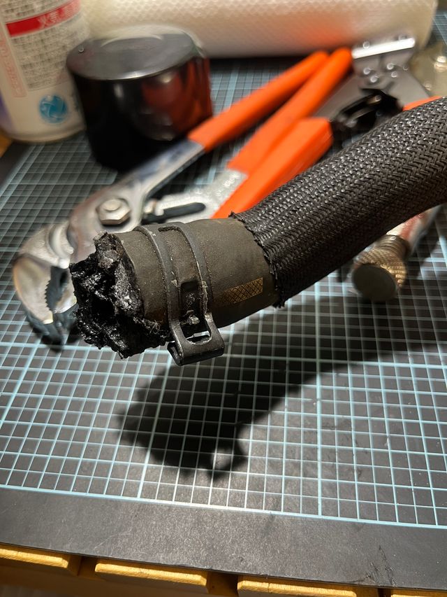 基本的にはパイプを外すだけなのですが、プライヤーで挟んだ瞬間ホースクランプ爪(クリップ式)が折れ絶望です。