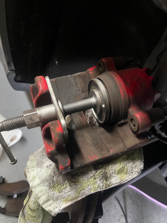 ピストンをSSTで戻しゴムシール類が破損していないことを確認し清掃して新品パッドを組み付けます。本来であればシールキットを購入したかったのですが、ネットでは見つからず購入出来なかったので諦めました。ディーラーでしか入手できないのでしょうか。お世話になっている輸入部品商社さんでも取り扱いが無いとのことでした。